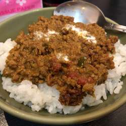 950円もするだけあって、ボリュームが凄い。ご飯は山盛り、ルーは広い皿にタップリ盛られて追加自由。ご飯とナンと選べるんだけど、今回はご飯で。ナンでも良かったかな。