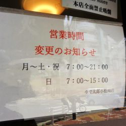 | 営業時間 | 7:00~21:00 [日]7:00~15:00 |
