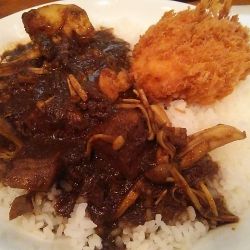 4月以来のジンコックへランチで訪問。さらさらしたルーは、挽肉とマッシュルーム入り。小辛でもスパイスにより頭皮から発汗が感じられるもの。辛さの中に旨味が凝縮されたルーはフワトロな半熟玉子と併せることで調和良くマッチ。途中、こちらの代名詞でもあるサクサクなカニコロにソースを垂らして箸休め。また卓上に置いてある桜大根と福神漬けでアクセント。年内中チャンスがあれば食べ収めしたい。ご馳走... 続きを見る
